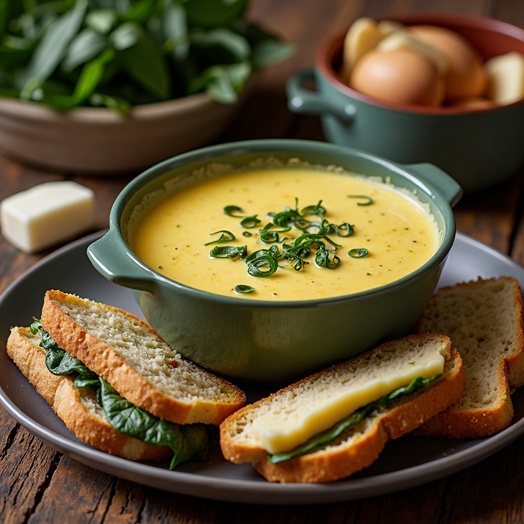 Receta de Fondue de Fontina DOP con Espinacas y Paninis