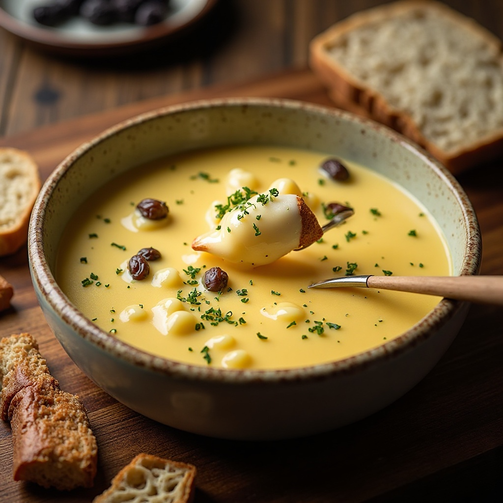 La fondue de queso es un plato tradicional de Suiza, pero su versión con el queso Camembert de Caen, Francia, ofrece una fusión única de sabores que capturan la esencia de ambas culturas culinarias. Este plato es perfecto para reuniones sociales y se disfruta con pan crujiente para sumergir en el queso fundido.