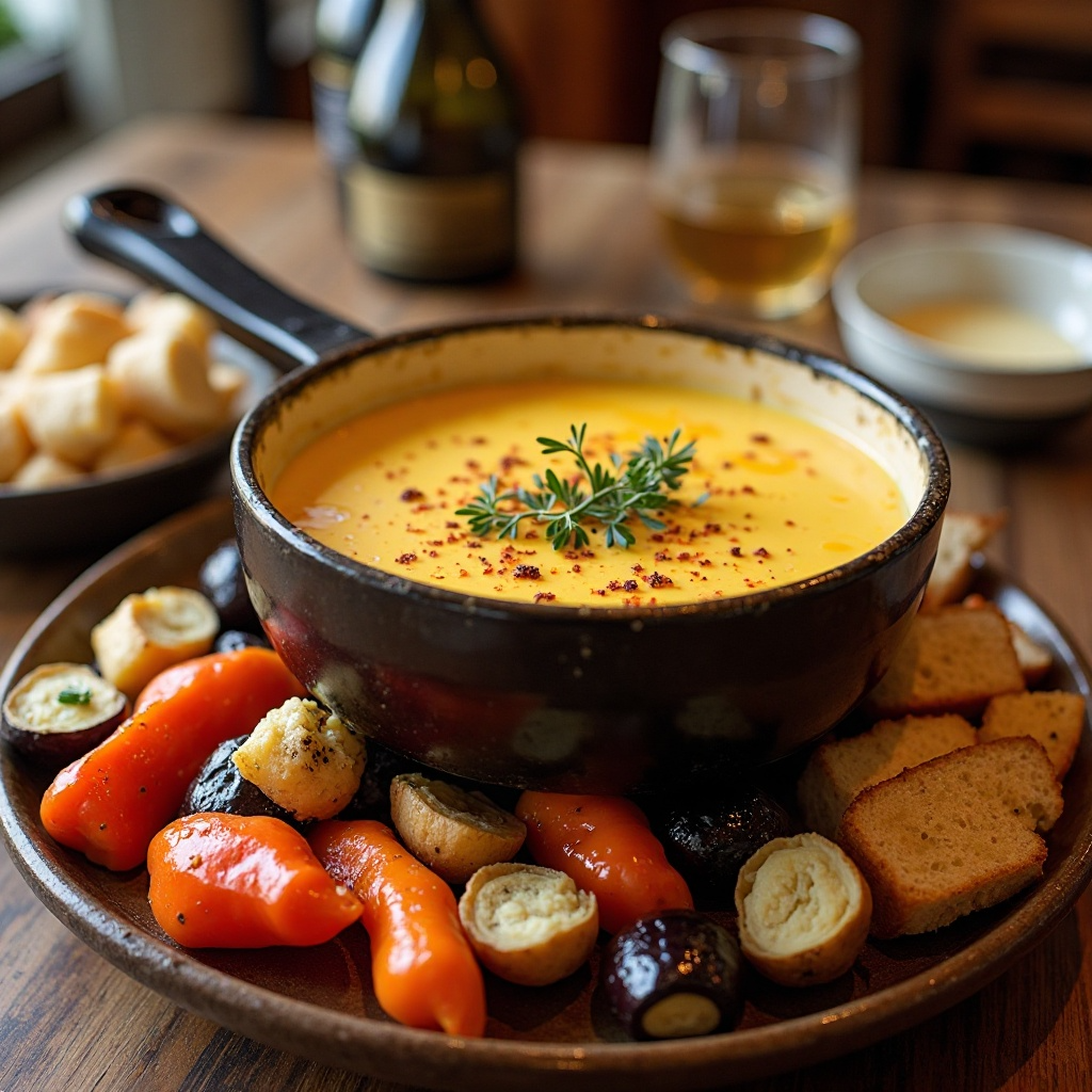 La fondue es una comida clásica y acogedora que se disfruta en muchos hogares, y la versión con queso de Colorado para Vail añade un toque distintivo y delicioso. Esta receta es perfecta para reuniones familiares o simplemente para disfrutar en un día frío, donde el calor del horno complementa perfectamente los sabores ahumados y robustos del queso.