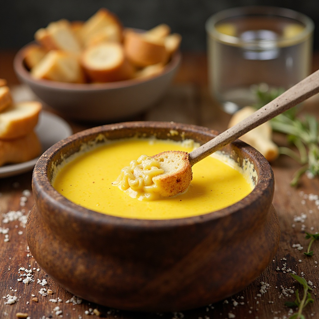 - Retira del fuego y sirve la fondue en un cuenco grande, asegurándote de que haya suficiente espacio para sumergir el pan. Sirve caliente con pan fresco y disfruta de la experiencia gourmet de Quimper.