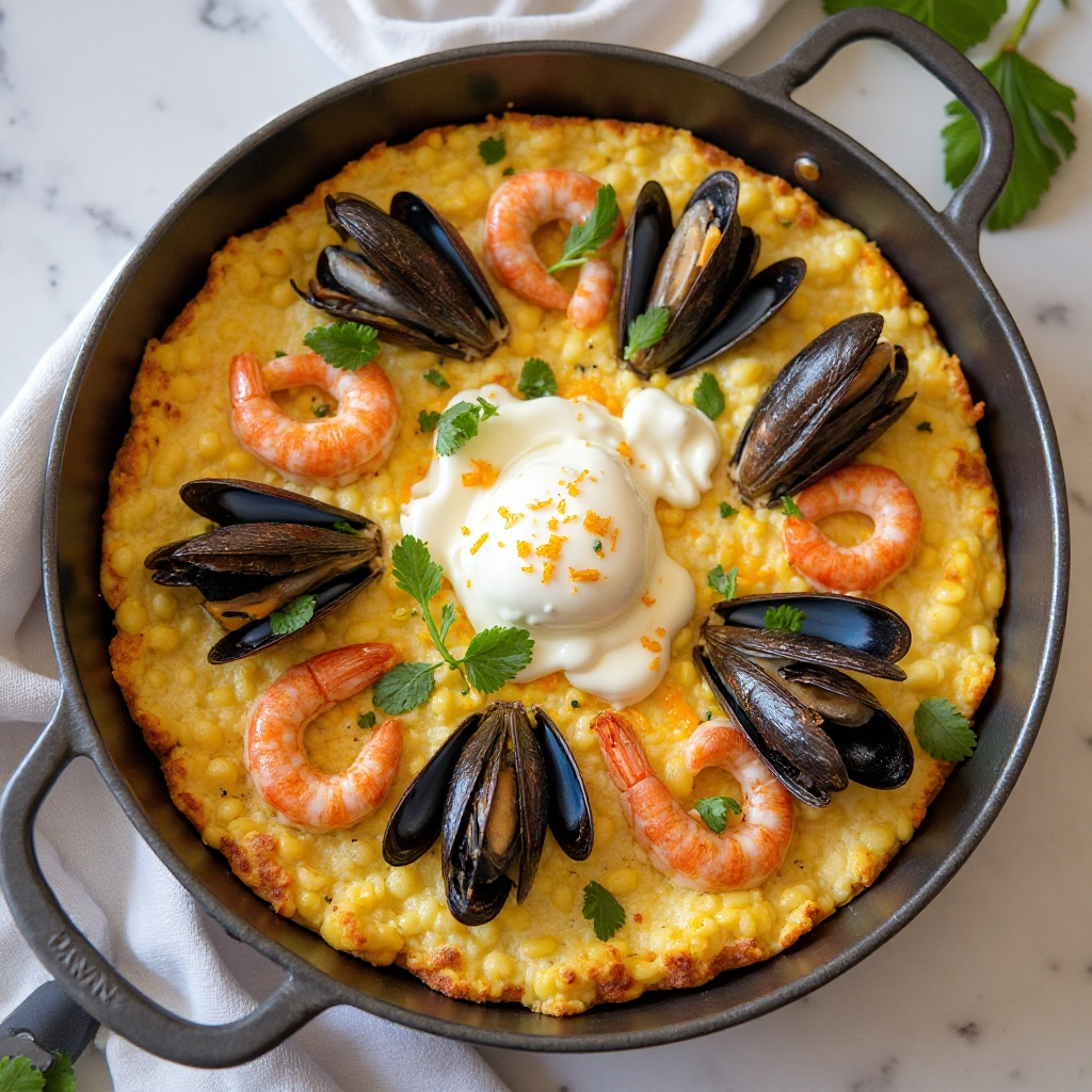 Receta de Frittata al Noci con Burrata y Frutos del Mar de Ostuni, Italia