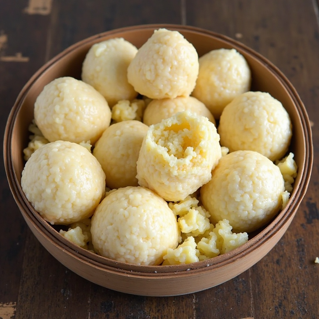 4. Una vez lista la masa, haz pequeñas bolitas y colócalas en una bandeja para hornear. Cocínalas en el horno precalentado a 200°C (392°F) durante aproximadamente 10 minutos, o hasta que estén suaves y tiernas al tacto.