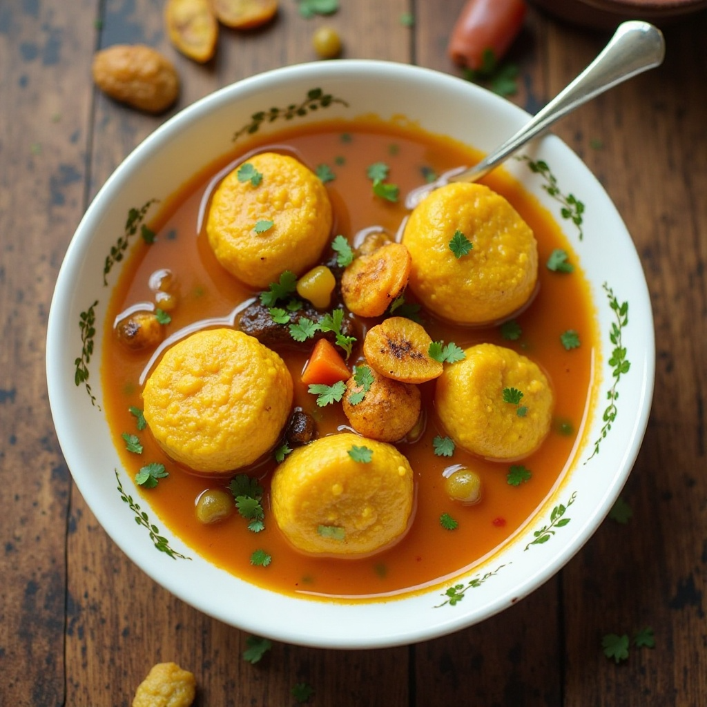 El fufu es un plato tradicional de origen africano, muy popular en varios países, incluido Ghana. Es una masa hecha de plátanos fritos y harina de fécula de mandioca, que se sirve con una variedad de sopas, como la Sopita, rica en verduras y sabores locales. Esta receta es ideal para quienes buscan explorar la cocina africana y disfrutar de un plato auténtico y reconfortante.