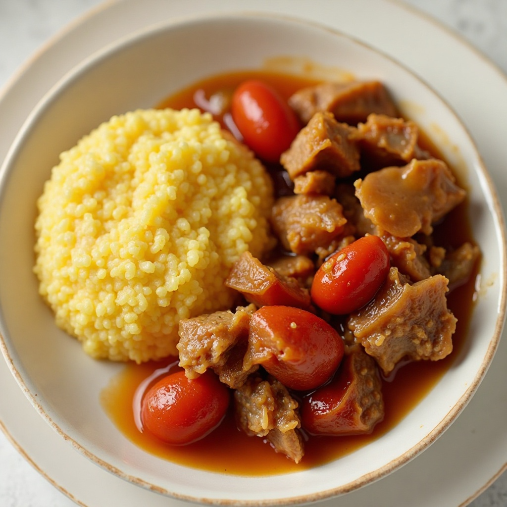 5. Sirve caliente, disfrutando de la textura cremosa del fungee contrastada con la riqueza del pepperpot.