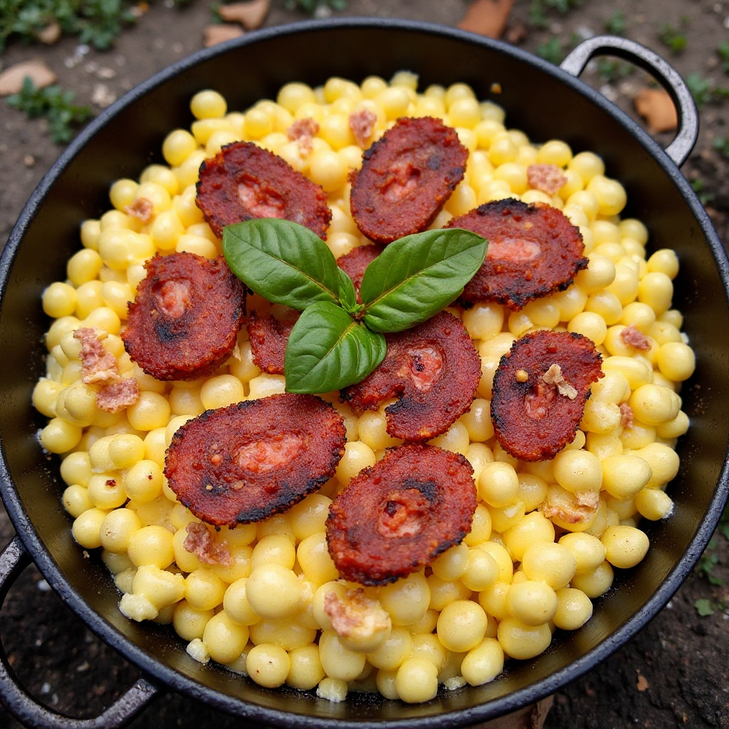 - Cuando la gachamiga tenga una textura firme y uniforme, sírvela caliente, acompañada de los ajos tostados y, si se desea, chorizo o panceta frita.