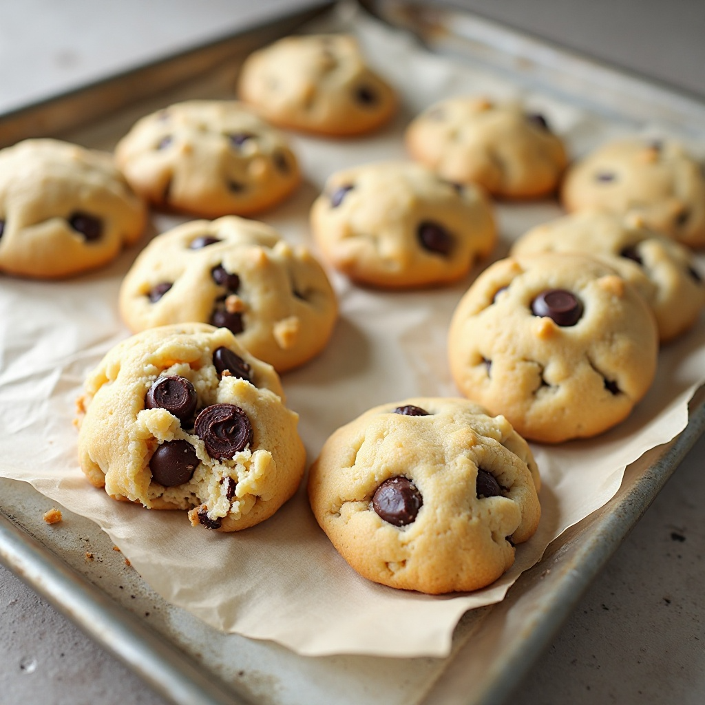 - Usa una cuchara grande o una bola de helado para formar pequeñas bolas de masa, colocándolas en las bandejas preparadas. Asegúrate de dejar espacio entre cada galleta, ya que subirán durante el horneado.