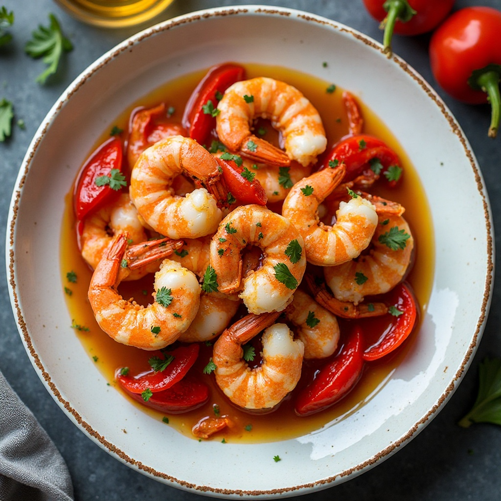 Receta de Gambas a la Rosa con Pimientos de Cap de Creus