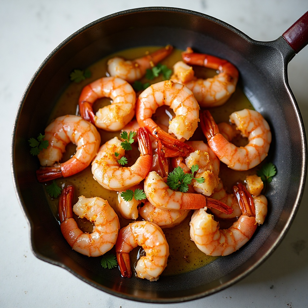 - Agrega las gambas a la sartén y mezcla bien con el ajo. Cocina a fuego medio hasta que las gambas se cocinen por completo (cerca de 4-6 minutos). Salpimienta al gusto.