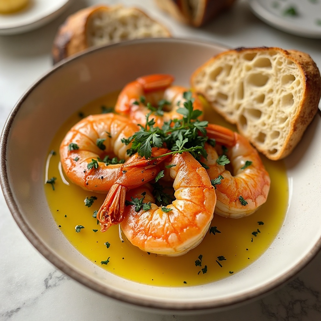 - Sirve las gambas inmediatamente en platos pequeños, acompañadas con pan para mojar la rica manteca que se forma durante la cocción.