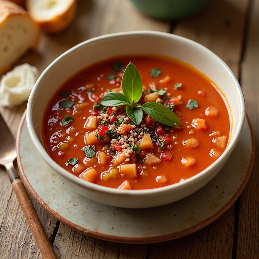 El gazpacho es un plato tradicional ligero y refrescante de la región de Andalucía, España. Esta versión especial incorpora las famosas pasas de Málaga, que le dan un toque único y un sabor más dulce. Perfecto para disfrutar en los días calurosos del verano andaluz.