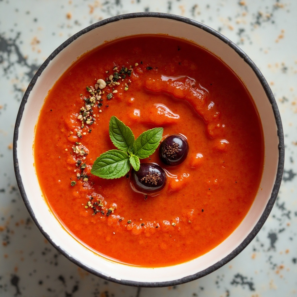 El gazpacho es un plato tradicional que ha cruzado fronteras desde Andalucía hasta el Mediterráneo. Vilassar de Mar, con su tradición vinícola y agricultura sostenible, es un lugar perfecto para experimentar con ingredientes locales como el tomate de su tierra. Este toque mediterráneo y la calidad del tomate hacen que este gazpacho no solo sea una delicia gastronómica, sino también un símbolo de apreciación por la tierra y sus sabores auténticos.