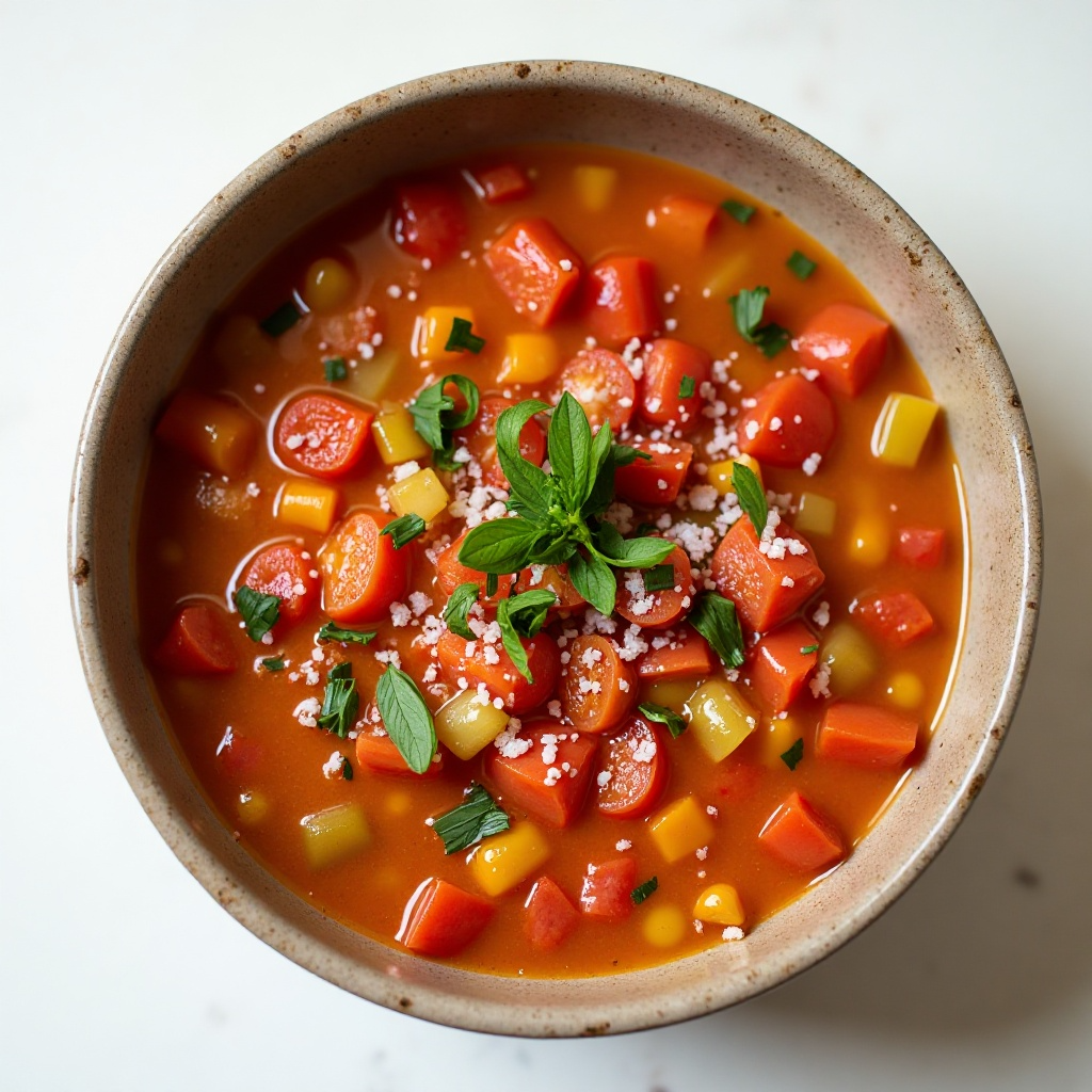 Este gazpacho es una fuente rica de antioxidantes gracias a los tomates y pimientos, conocidos por sus propiedades antiinflamatorias. Los vegetales utilizados son bajos en calorías pero altos en nutrientes, lo que lo hace ideal para una dieta saludable. Es importante consumirlo fresco para obtener el máximo beneficio nutricional.