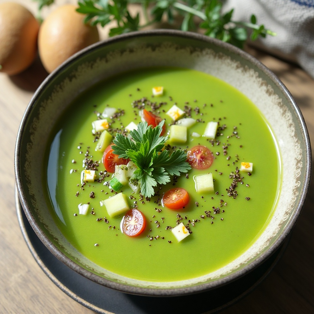 En Gisborne, conocida por sus viñedos y su clima fresco, se ha creado este gazpacho verde que refleja la diversidad de ingredientes locales. La región es famosa por sus kiwis de calidad, y esta receta celebra esa tradición incorporándolos en un platillo que también incluye pepino, típico de la cocina mediterránea, y otros vegetales frescos. Este plato no solo es un festín para el paladar sino también una muestra del enfoque local y saludable de la gastronomía neozelandesa.