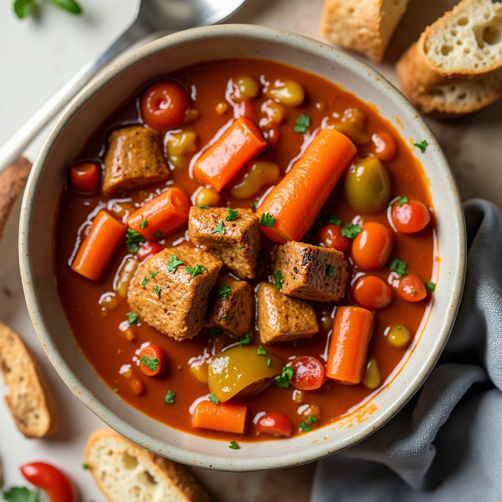 Este guiso es rico en proteínas y contiene verduras como zanahorias que aportan vitaminas y fibra. La carne de cerdo es una buena fuente de hierro, mientras que el pimentón proporciona antioxidantes. Para un plato más ligero, puedes optar por reducir la cantidad de carne o reemplazarla por pollo o pavo.