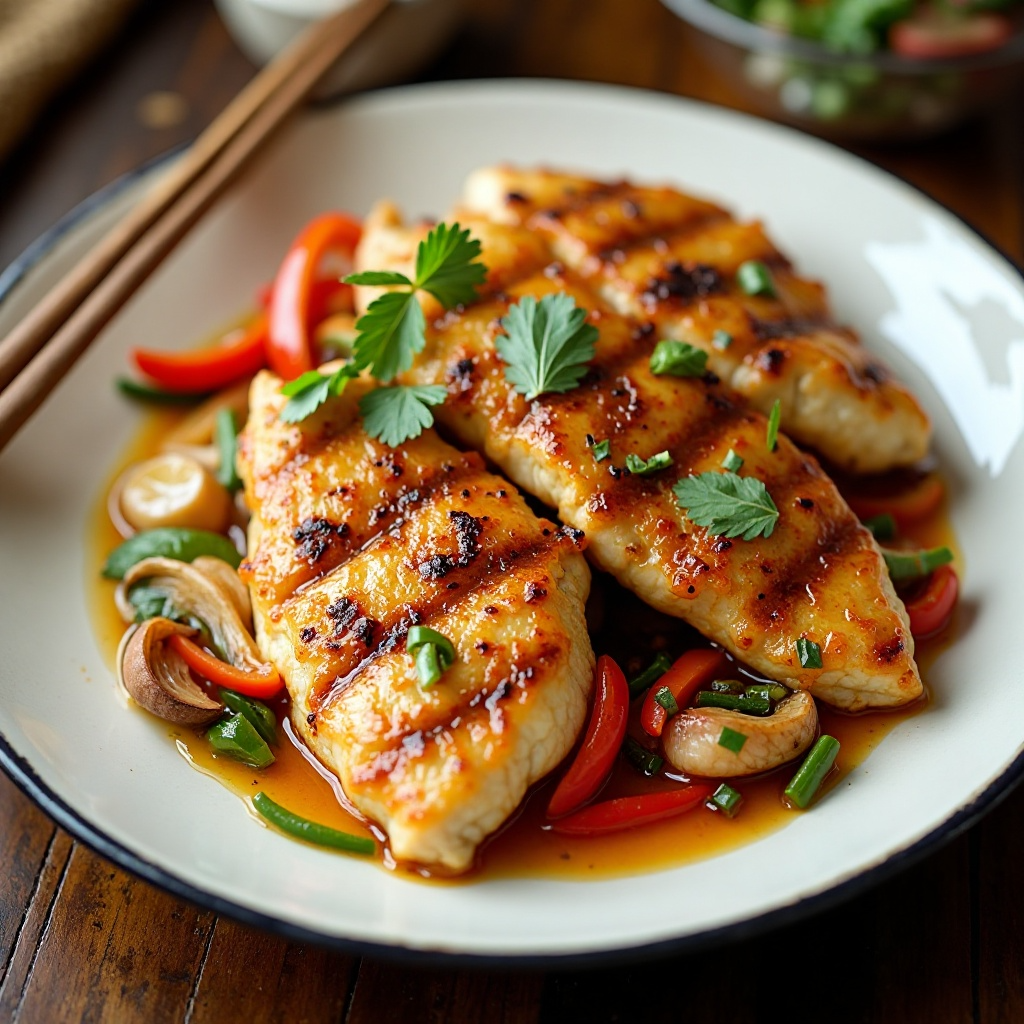El Pla Pao es una variedad de tilapia común en el Golfo de Tailandia, especialmente en la provincia de Chonburi. Esta receta ofrece un plato equilibrado y sabroso, combinando el pescado tierno con un aderezo aromático y picante que evoca los sabores típicos de Tailandia. Ideal para una comida ligera o como opción principal en días soleados.