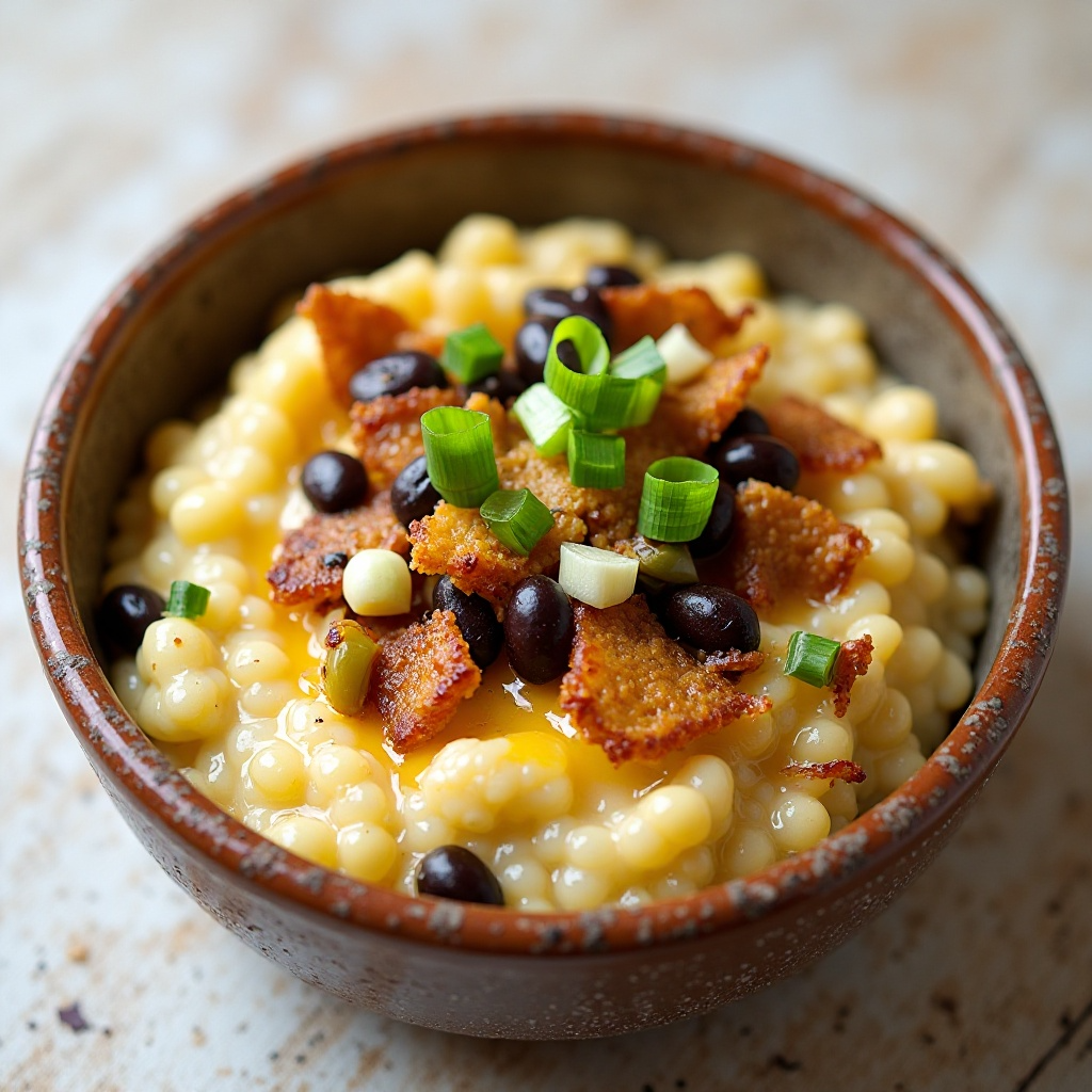 Los grits son un alimento básico en la cocina sureña de los Estados Unidos, con raíces en culturas indígenas americanas y posteriores influencias europeas. La combinación de grits con habichuelas negras y bacon refleja la fusión de sabores que caracteriza a la comida sureña, donde ingredientes locales e importados se mezclan para crear platos únicos y deliciosos. Esta receta es perfecta para disfrutar de ese sabor distintivo en Phenix_City.