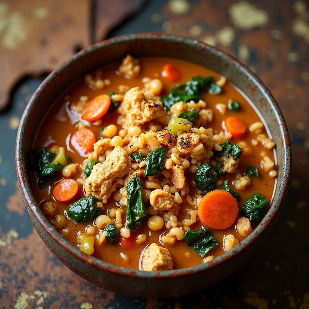 El pollo es una fuente de proteínas magras y el arroz proporciona carbohidratos. Las especias utilizadas en el gumbo pueden ofrecer beneficios antiinflamatorios. Para una versión más saludable, considera usar caldo de verduras en lugar de mitad caldo de pollo para reducir la grasa animal. Las espinacas son un toque saludable que aporta vitaminas y minerales.