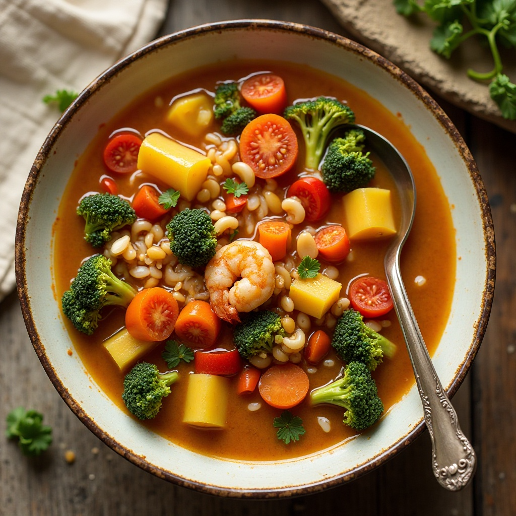 Este gumbo vegetariano es bajo en calorías y rico en vitaminas y minerales gracias a las verduras. El uso de caldo de verduras reduce la cantidad de sodio, manteniendo un sabor tradicional sin excesos. La opción de incluir camarones permite adaptar el plato a preferencias dietéticas variadas, siempre conscientes del impacto nutricional.