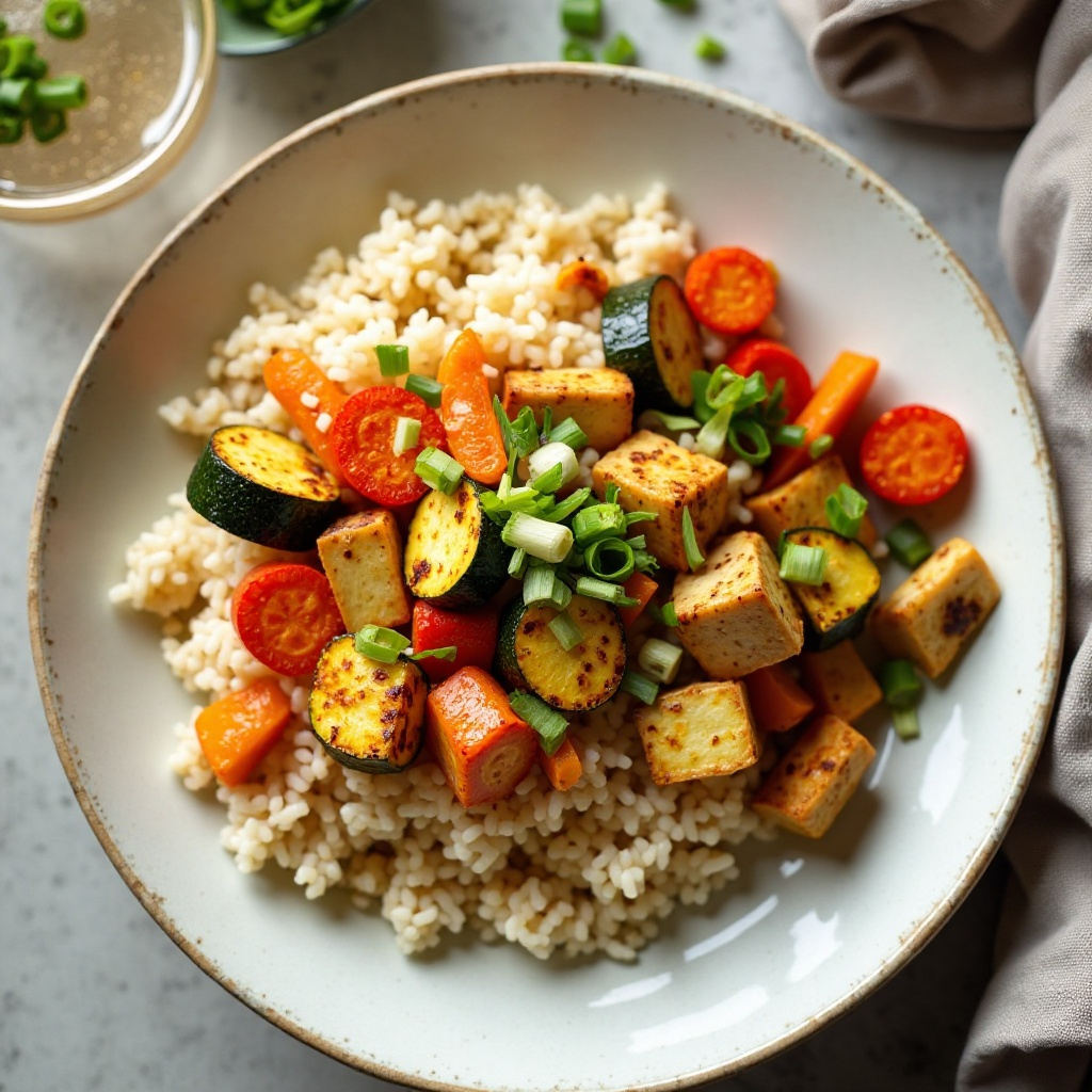 Este plato es una excelente opción para quienes buscan equilibrar proteínas magras con carbohidratos integrales. El tofu añade proteínas de origen vegetal, y los vegetales asados proporcionan fibra y antioxidantes. Recuerda ajustar las porciones de aceite según tus preferencias dietéticas.