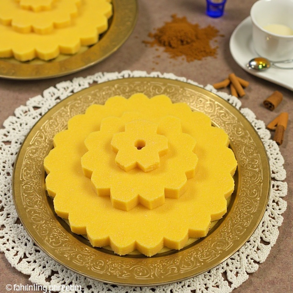 El Halwa Showaiter es una tradicional golosina de la región del Golfo Pérsico, y especialmente popular en Manama, Bahréin. Esta variante con mango añade un toque fresco y tropical a la receta original, que normalmente se prepara con harina de semola. El Halwa Showaiter es una delicia dulce que se sirve como postre en ocasiones especiales.