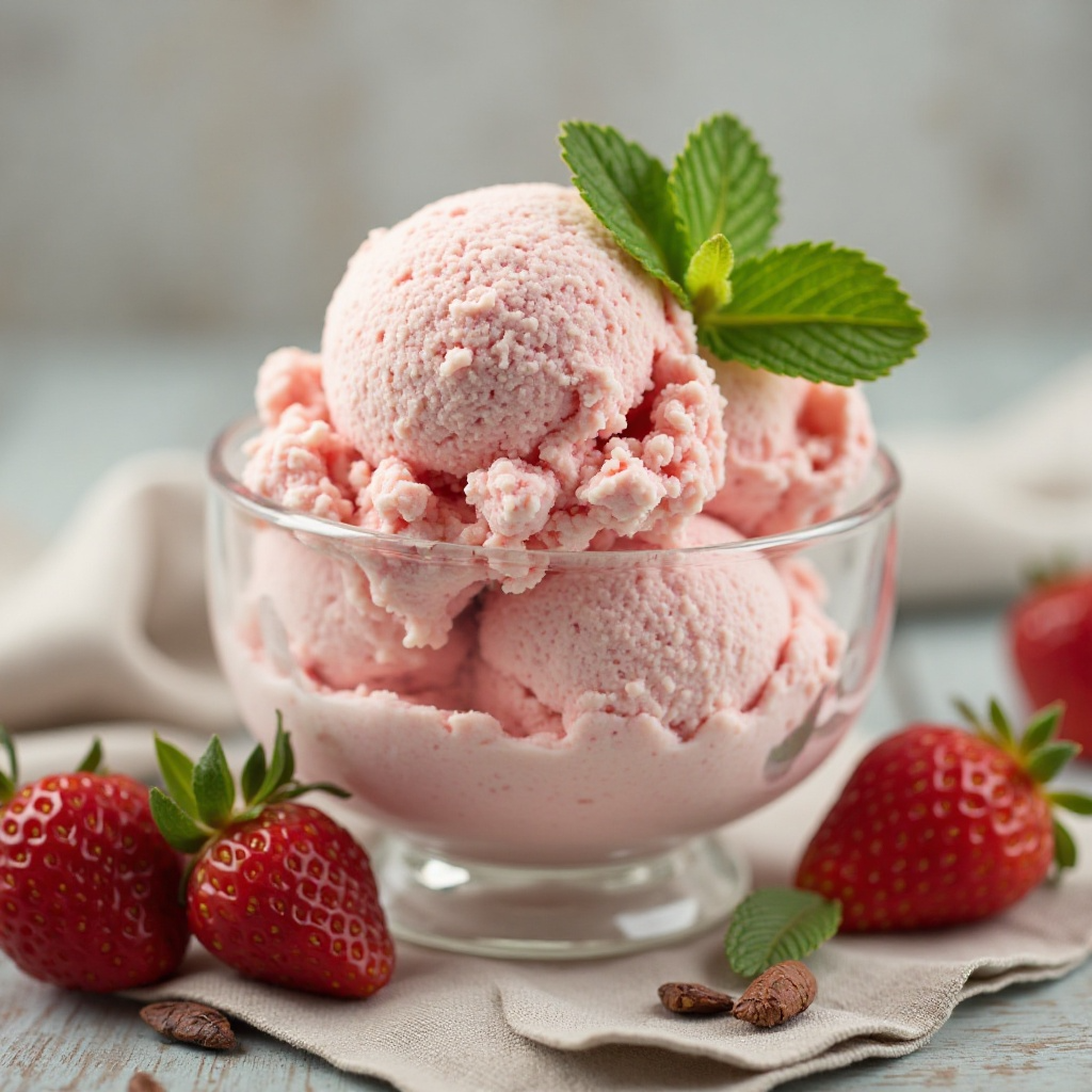 Este helado es naturalmente bajo en grasa gracias a la crema agria y las fresas. Las fresas son ricas en antioxidantes y vitamina C, lo que le da un toque saludable a esta indulgencia. Puedes ajustar la cantidad de azúcar y esencia de menta según tu preferencia personal. Para una versión sin lactosa, puedes usar leche de almendras como base.