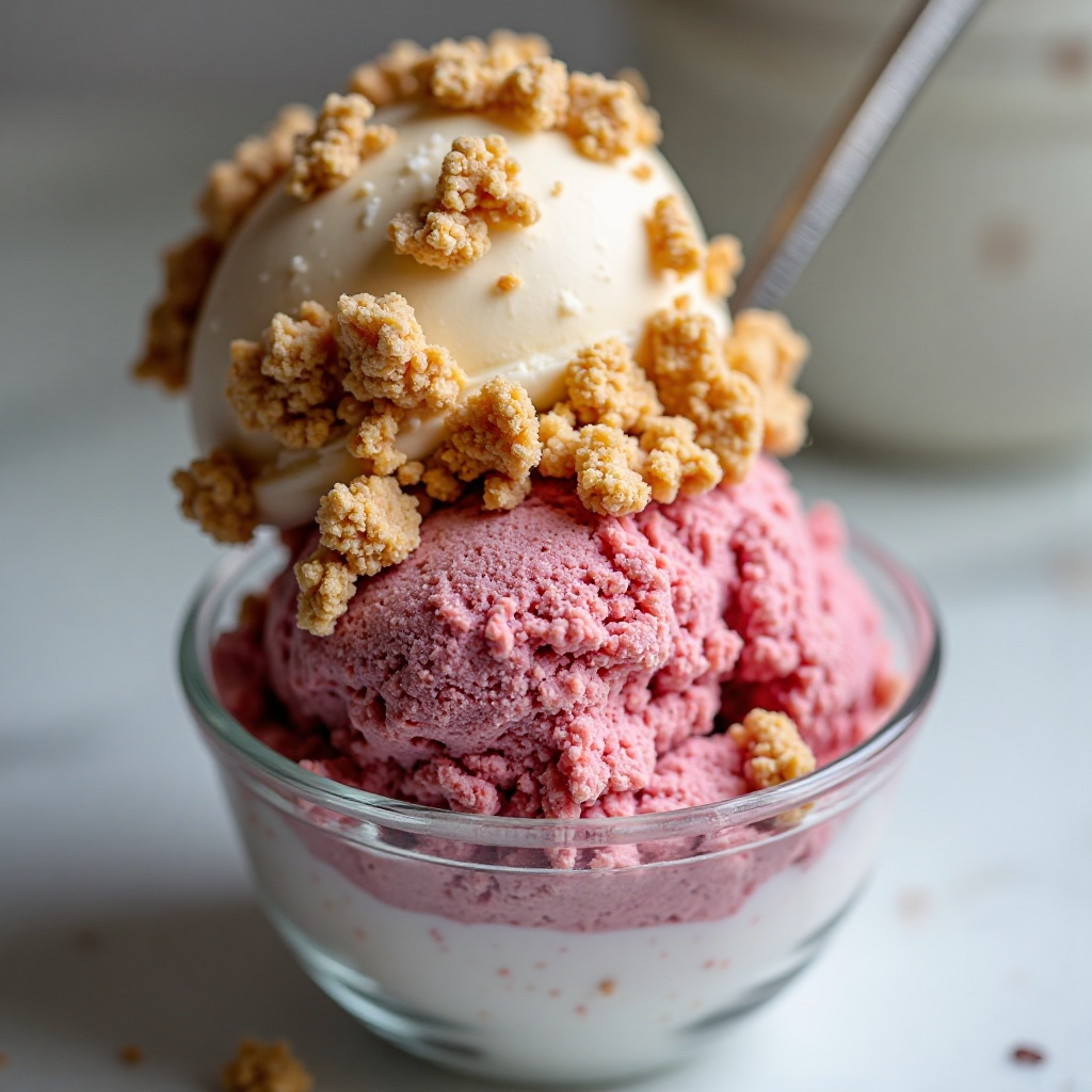 Este helado es una fusión deliciosa entre el clásico helado de frutas y la textura crujiente del crumble, un toque distintivo de la cocina americana. Inspirado en Akron, Ohio, esta receta celebra los sabores locales con una base cremosa y una capa crujiente que le da un contraste perfecto.