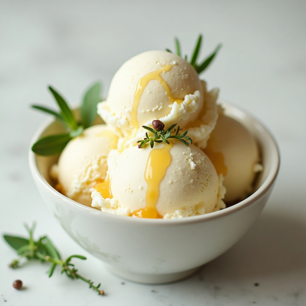 - Una vez listo, retira el helado y decora con hierbas frescas si lo deseas. Sirve en platos individuales, disfrutando del helado único de Salem con un toque artesanal de Homestead Creamery.