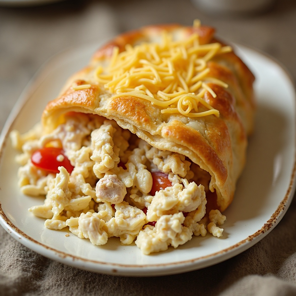 - Una vez lista la mezcla de pollo y tomates, vierte en el hojaldre previamente preparado. Si lo deseas, puedes añadir queso rallado sobre la mezcla para darle un toque extra cremoso.