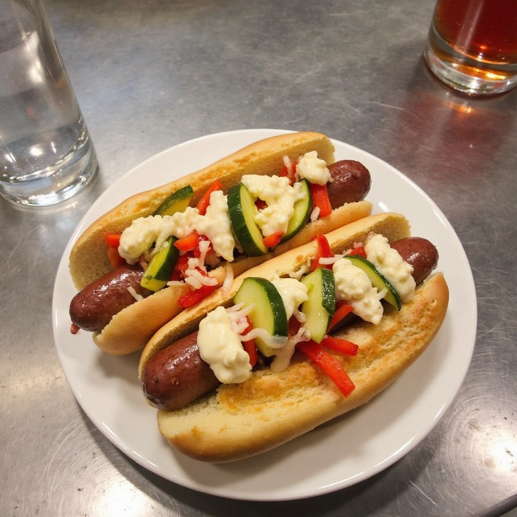 La elección de ingredientes puede afectar significativamente la salud de esta receta. Optar por salchichas sin gluten y sin aditivos artificiales puede hacerla más saludable, proporcionando proteínas de calidad y reduciendo el consumo de azúcares añadidos. Añadir verduras frescas como pimientos y pepino aumenta el valor nutricional al ofrecer vitaminas y antioxidantes.