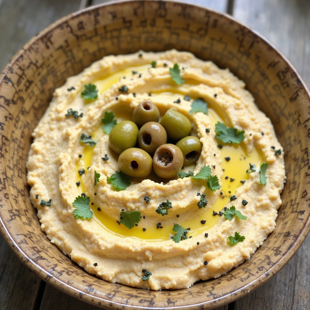 Receta de Hummus con Za’atar y Aceitunas de Jericó