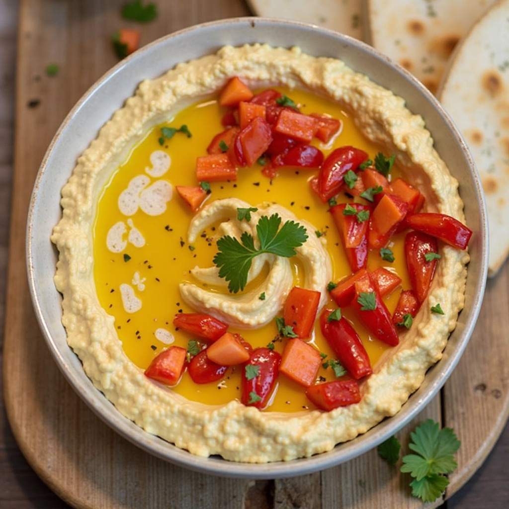 Receta de Hummus de Pimiento Rojo y Pan de Pita