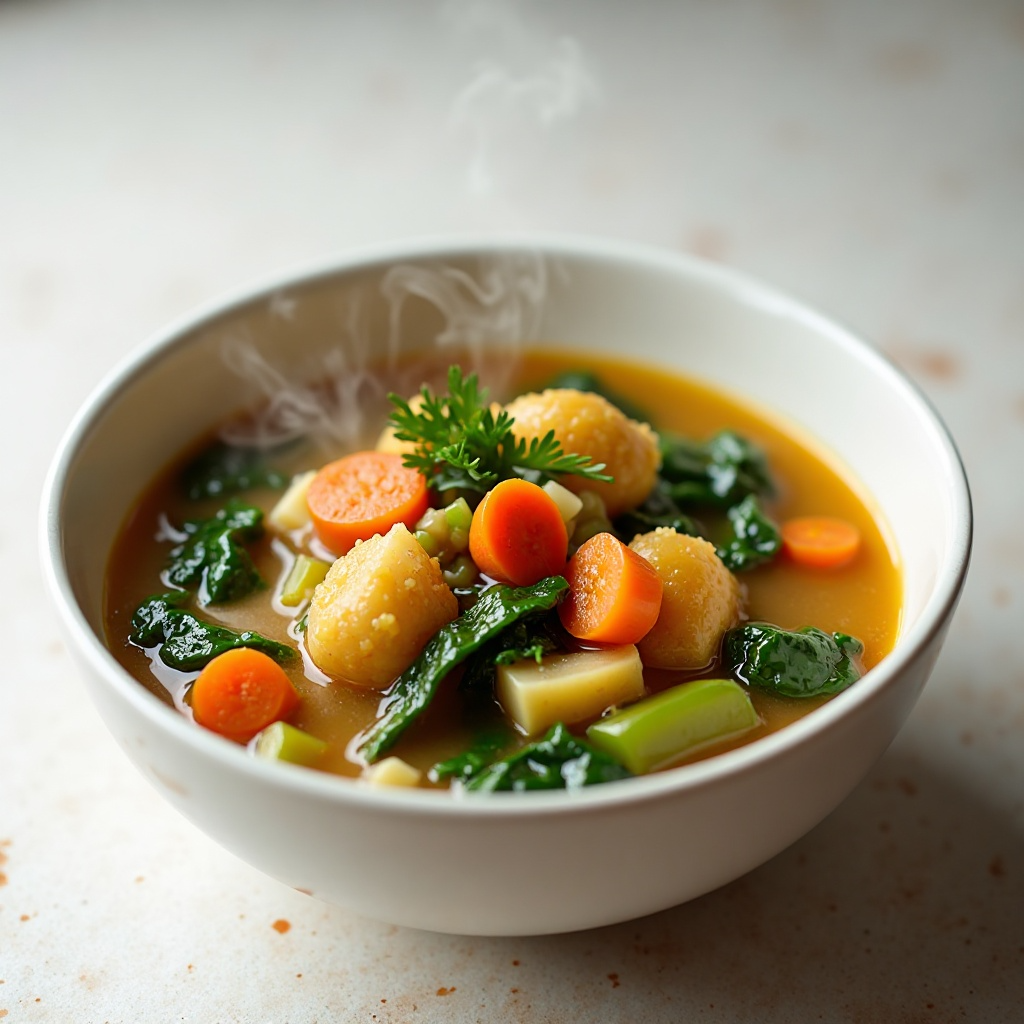 Ifisashi es un ingrediente clave en muchas recetas tradicionales en Zambia, especialmente en sopas y platos de acompañamiento. Este alimento versátil se puede encontrar en diversas formas, desde granos de maíz hasta harina gruesa. Esta receta adapta Ifisashi para ser parte de una sopa nutritiva llena de verduras, perfecta para cualquier momento del día.