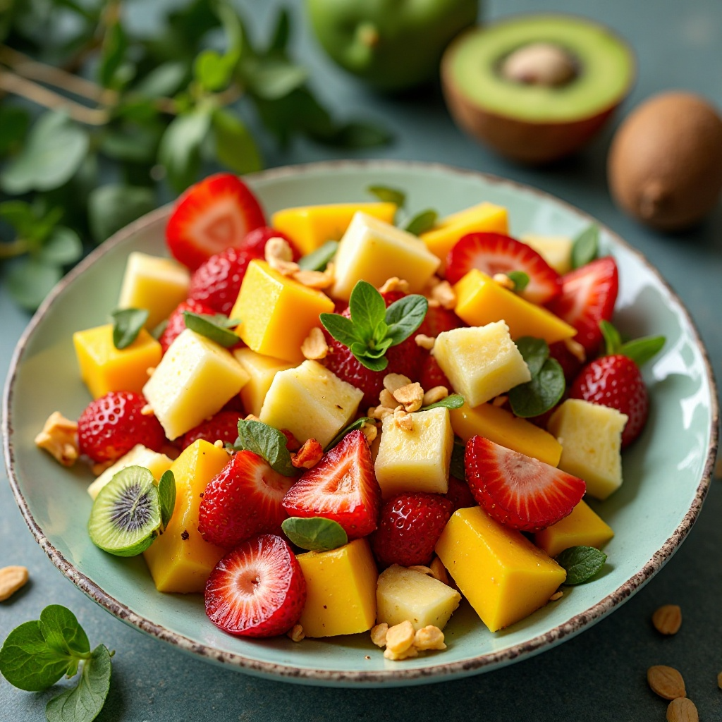 En la remota isla de Nauru, rodeada por arrecifes de coral, se encuentra una rica tradición culinaria que incluye el uso de frutas tropicales locales. El «Ijuw Tropical Fresh Salad» es una creación moderna inspirada en los sabores vibrantes de las frutas de esta isla del Pacífico Sur, diseñada para ser disfrutada por personas que buscan incorporar ingredientes saludables y exóticos en su dieta.