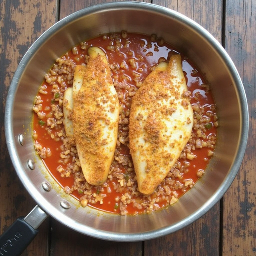 - Incorpora el pescado en trozos al sofrito de cebolla y tomate, asegurando que esté bien cubierto por la mezcla.