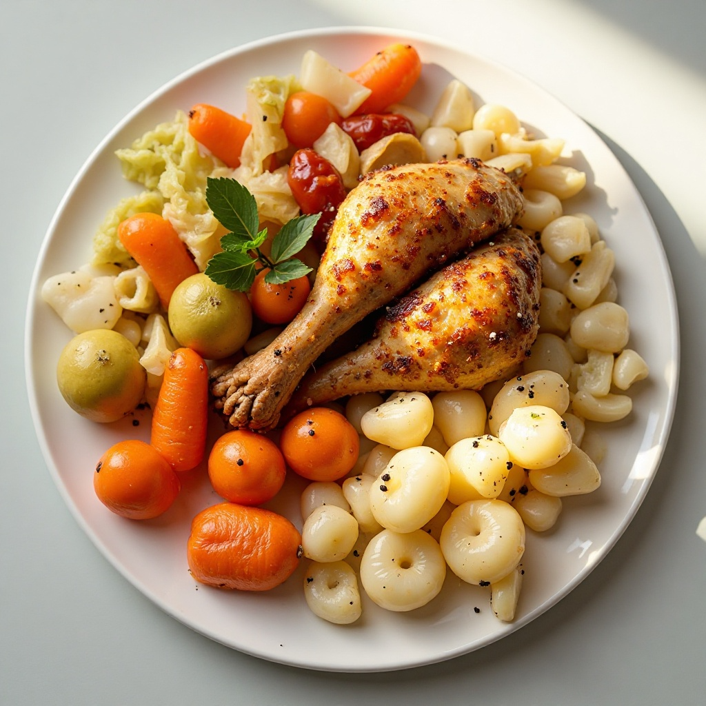 Este plato es una fuente saludable de carbohidratos complejos gracias a las patatas y papas nuevas, junto con vitaminas y minerales de las verduras. El pollo proporciona proteínas de calidad. Para una versión más ligera, se pueden elegir papas medianas en lugar de grandes y reducir la cantidad de aceite usado en la preparación del pollo.