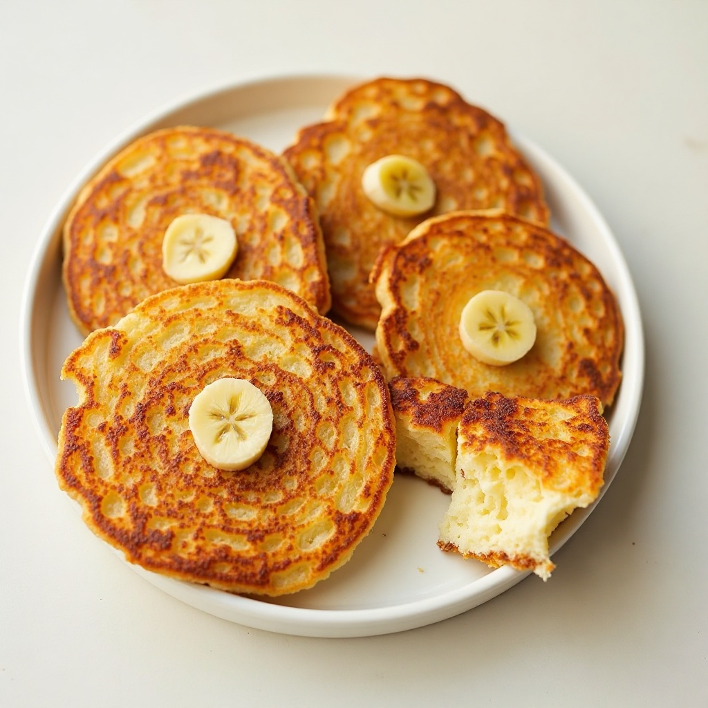 - En una sartén antiadherente caliente, coloca las rodajas de plátano y fríelas hasta que estén doradas por ambos lados.