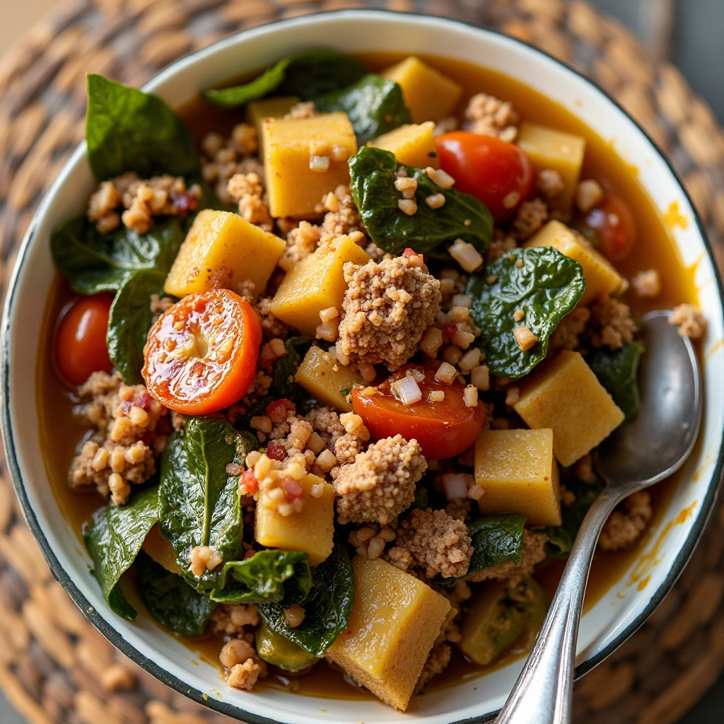 El Jollof Leaf Stew es rico en vitaminas y minerales gracias a sus ingredientes naturales. Las hojas de Cassava son una fuente importante de fibra dietética, vitamina C y antioxidantes. La carne también proporciona proteínas necesarias. Para aquellos que siguen una dieta baja en sodio, se recomienda ajustar la cantidad de sal según las preferencias personales.