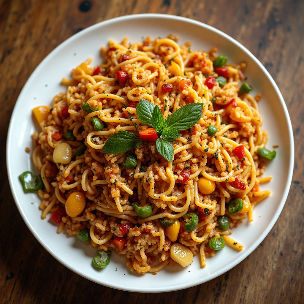 1. Cocina los espaguetis según las instrucciones del paquete, reservando un poco del agua de cocción para la salsa Jollof.