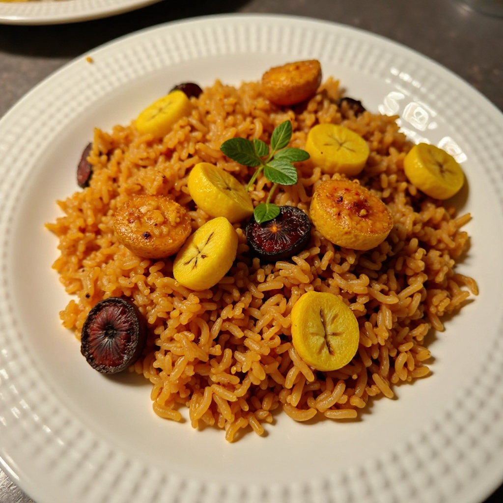 Receta de Jollof Rice con Plantains Caramelizados (Kelewele) para Accra, Ghana