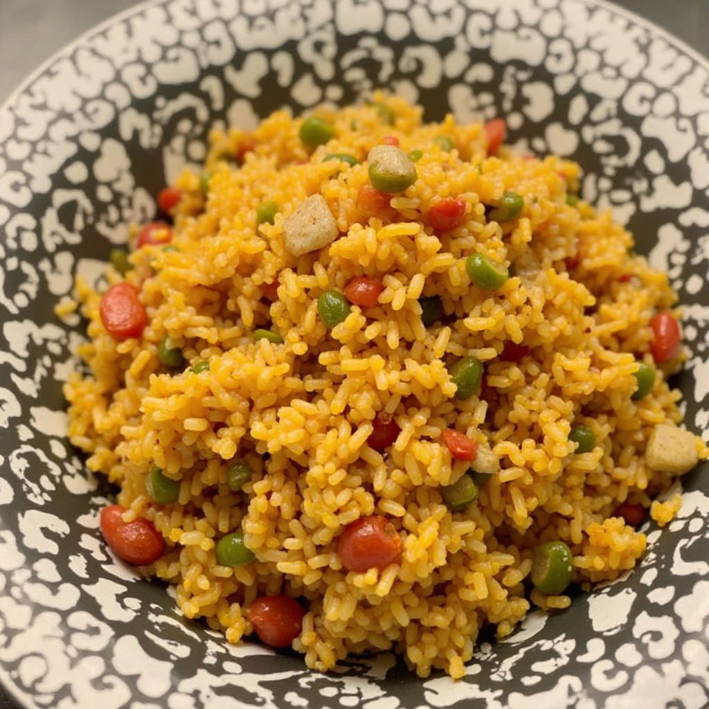 El Jollof Rice es un plato icónico de West Africa, popular en países como Nigeria. Esta versión incorpora pollo y una variedad de vegetales para crear un equilibrio entre sabores salados, dulces y picantes que son característicos de la región. Perfecto para comidas familiares o festividades, este Jollof Rice se sirve caliente, con su arroz tierno y sabroso.