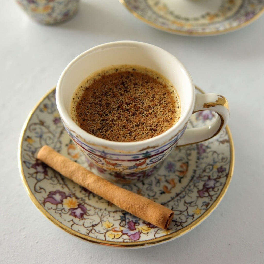 - Sirve el café con un poco de canela en polvo y cardamomo molido al gusto. Agrega estos condimentos después de la preparación para mantener sus propiedades intactas.