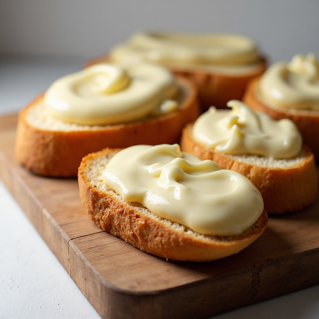4. Una vez listo el pan, retíralo de la sartén y colócalo sobre una tabla de cortar o una bandeja de servir. Cubre cada rebanada de pan con un poco de queso derretido kajmak.