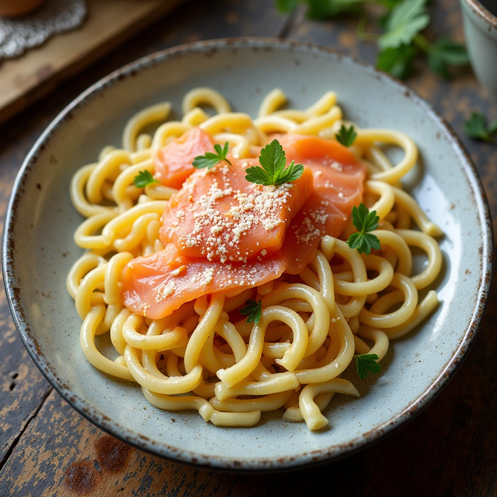 El Jyväskylä, situado en el centro de Finlandia, es conocido por su rica cultura y acogedora cocina. Inspirados en esta región, hemos creado una receta que combina el tradicional salmón ahumado finlandés con el popular plato alemán spätzle, resultando en un plato lleno de sabor y tradición.