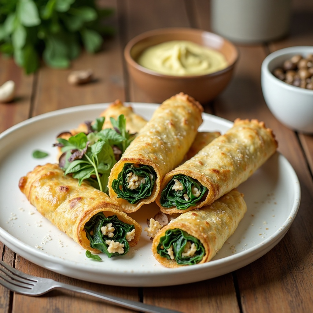 4. Si eliges no freír, pliégala en dos partes como si fuera una bandeja, doblando los bordes hacia adentro para crear una envoltura. Si prefieres una opción crujiente, bate los huevos y sumerge cada flauta cubierta en el huevo antes de freír en aceite caliente hasta que estén doradas.
