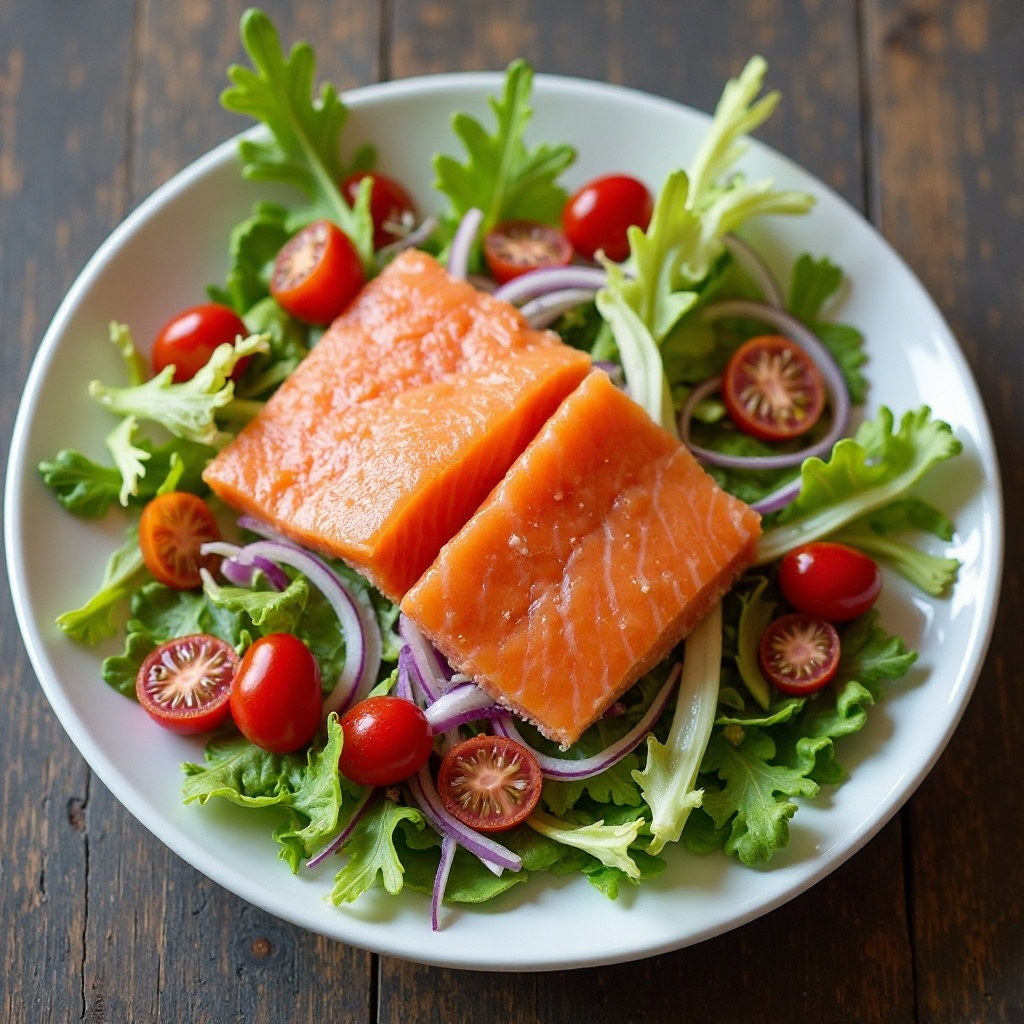 - Sirve la ensalada en platos individuales, disponiendo las tiras de salmón ahumado sobre la ensalada justo antes de servir, para mantener su textura crujiente.