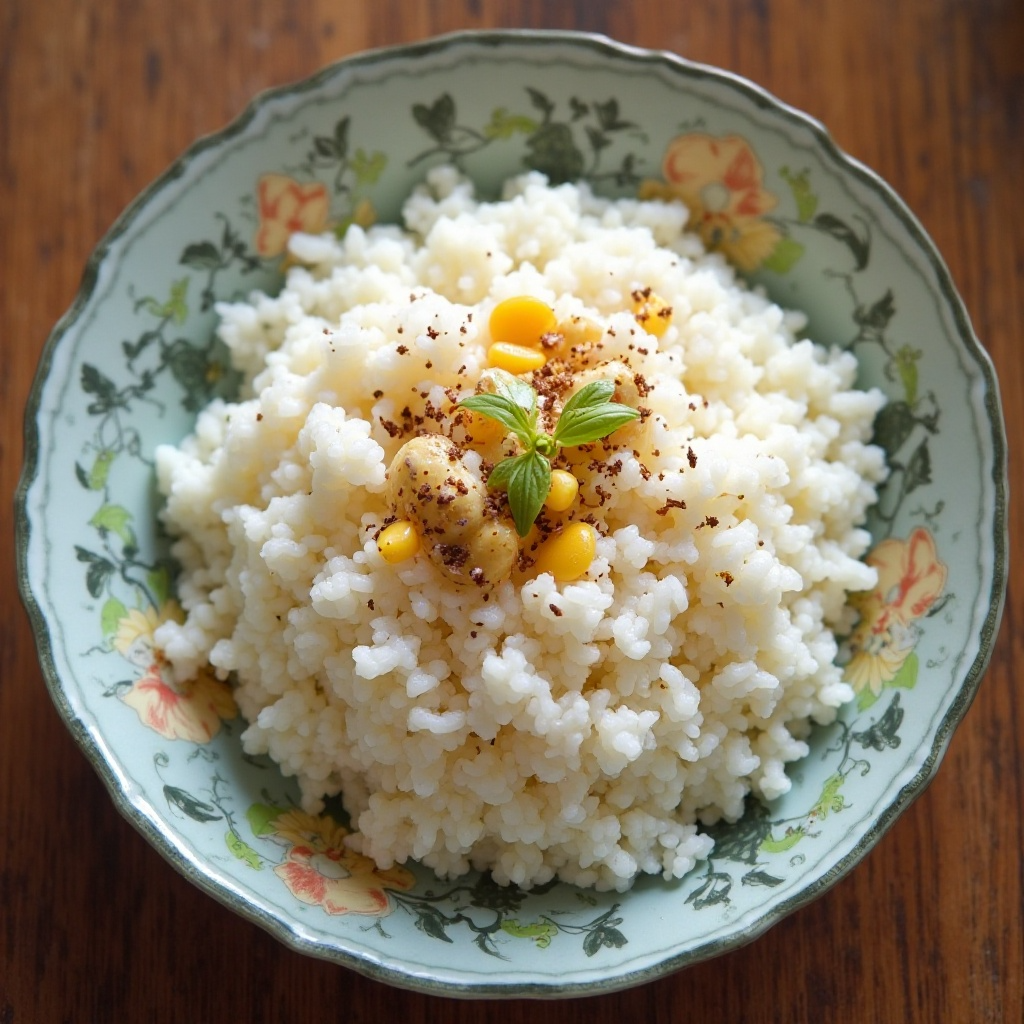 - Coloca el arroz pegajoso en una fuente o bandeja amplia. Sirve caliente o a temperatura ambiente, según tu preferencia.
