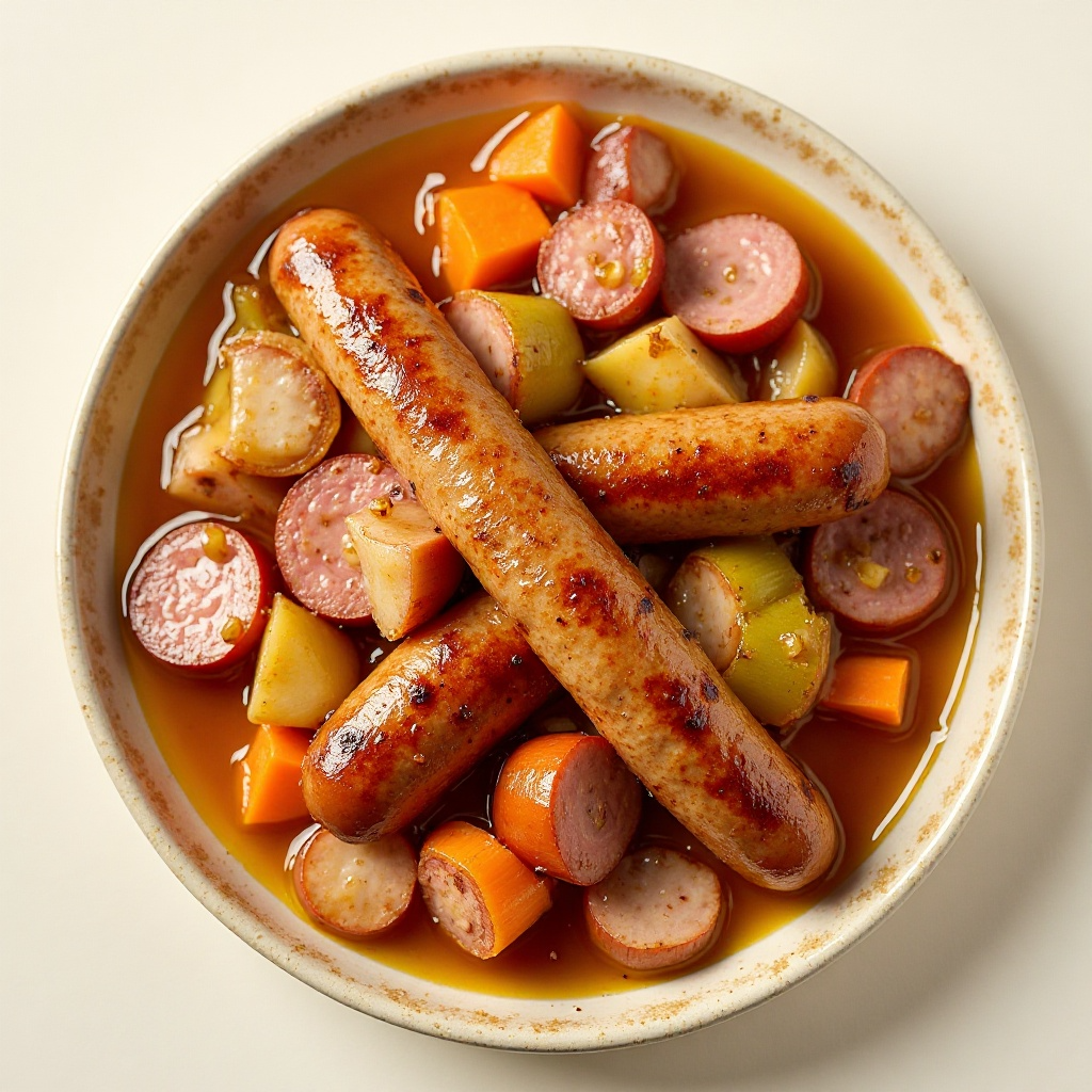 - Sirve caliente, cortando las salchichas en rodajas gruesas si es necesario, y acompaña con pan blanco o una ensalada verde.