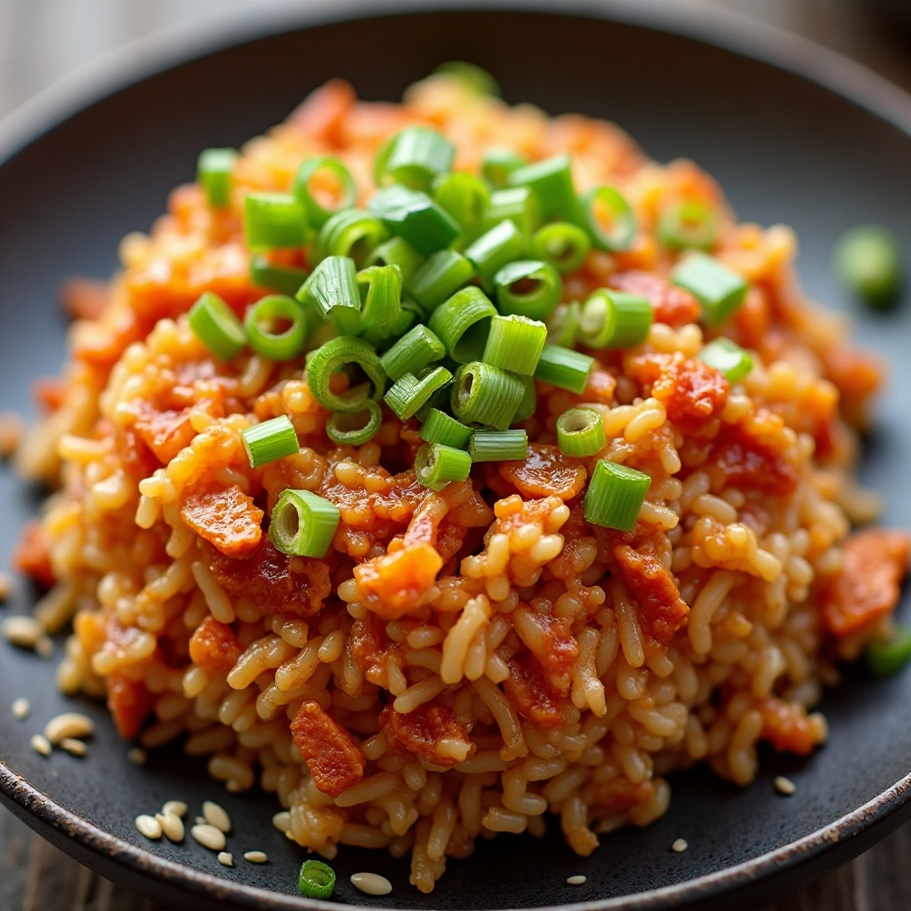 En Corea del Sur, el soju es una bebida tradicional conocida por su textura cremosa y sabor suave, a menudo utilizada en la cocina para añadir profundidad a los platos. Este kimchi fried rice, adornado con un glaze de soju, captura perfectamente los sabores coreanos. Es ideal para quienes disfrutan de la combinación de sabores picantes, salados y umami característicos de los platos coreanos.