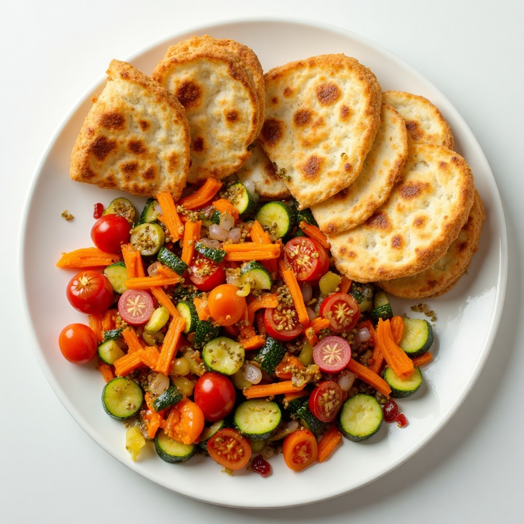 5. Retira del fuego, sazona con sal, pimienta y orégano seco si lo deseas. Sirve la Kisra con las verduras a un lado y disfruta de este almuerzo lleno de sabor y nutrientes.