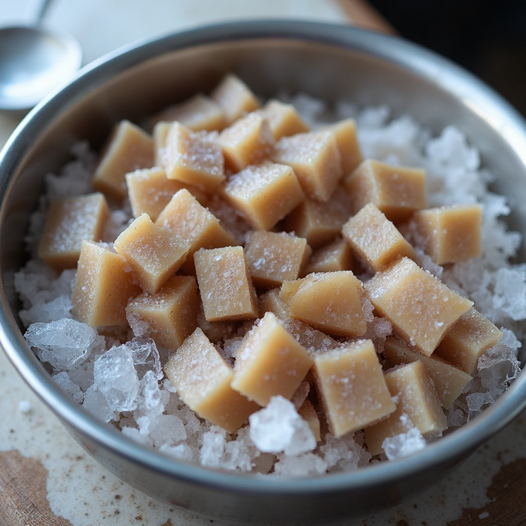 2. En un contenedor hermético o en una bolsa de congelación, mezcla los trozos de carne con el hielo picado, asegurando que esté bien cubierto para mantener la temperatura baja.
